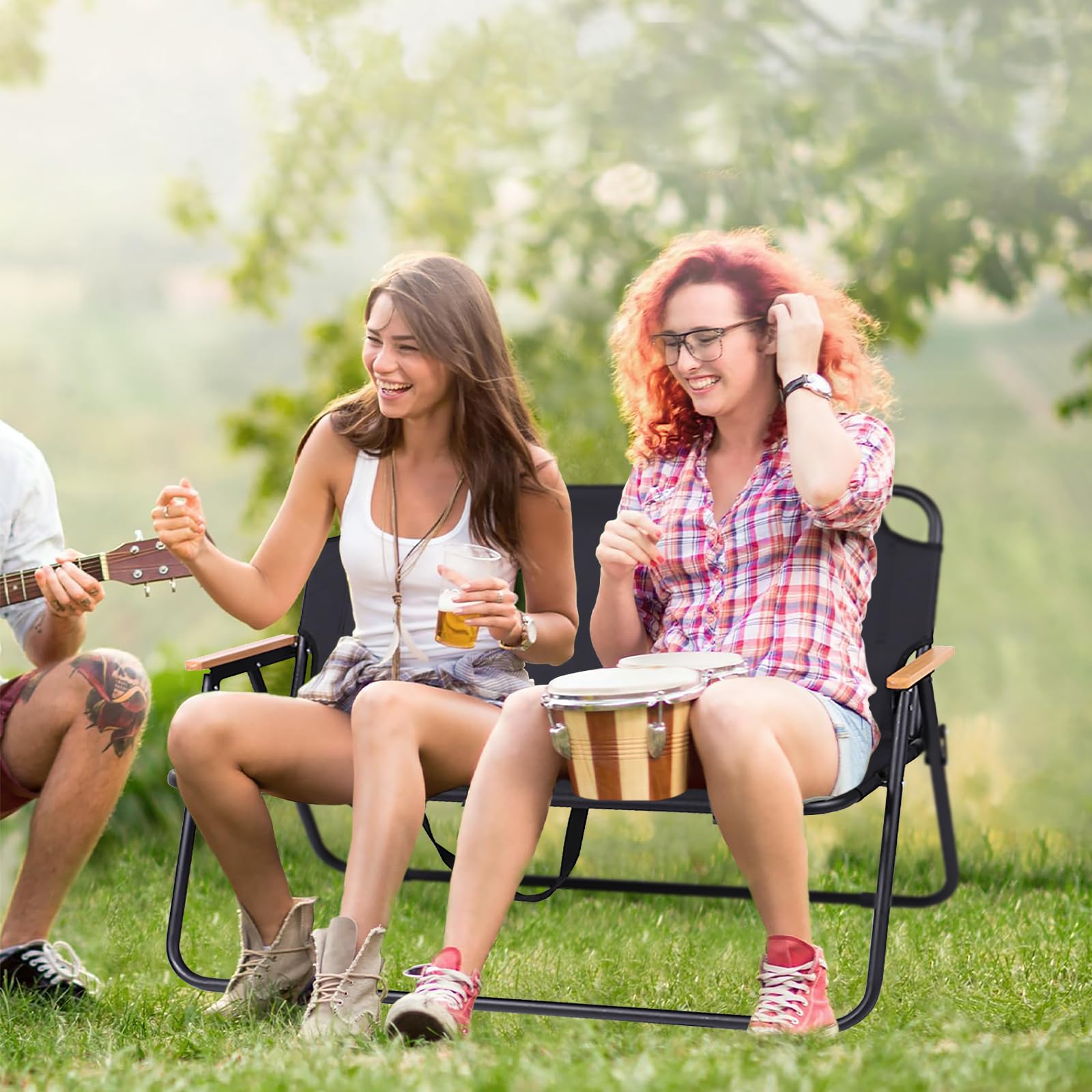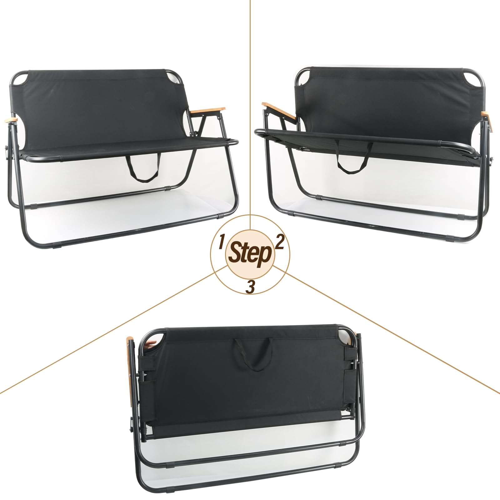 - 【HIGH QUALITY】: The loveseat camping chair is made of 600D oxford fabric,and with wooden armrests on both sides