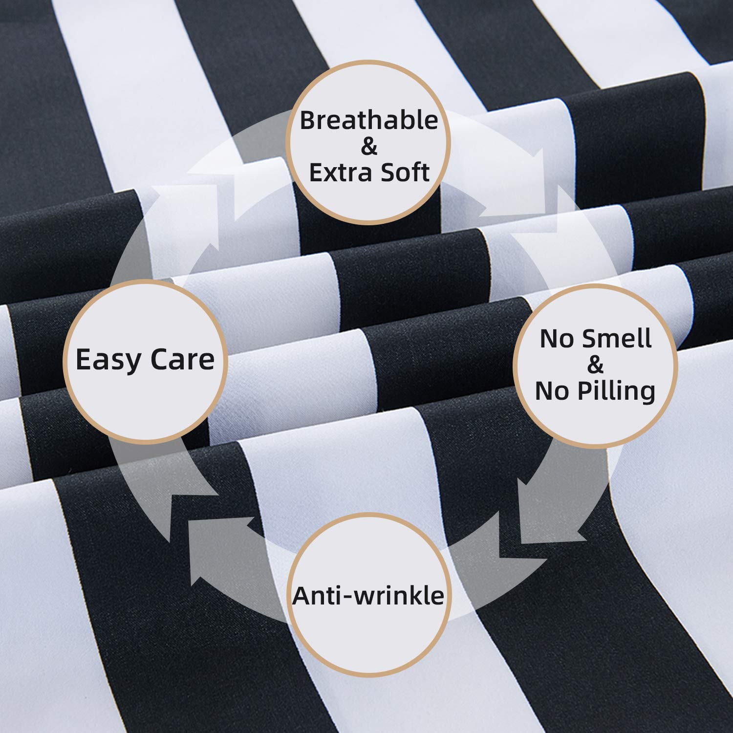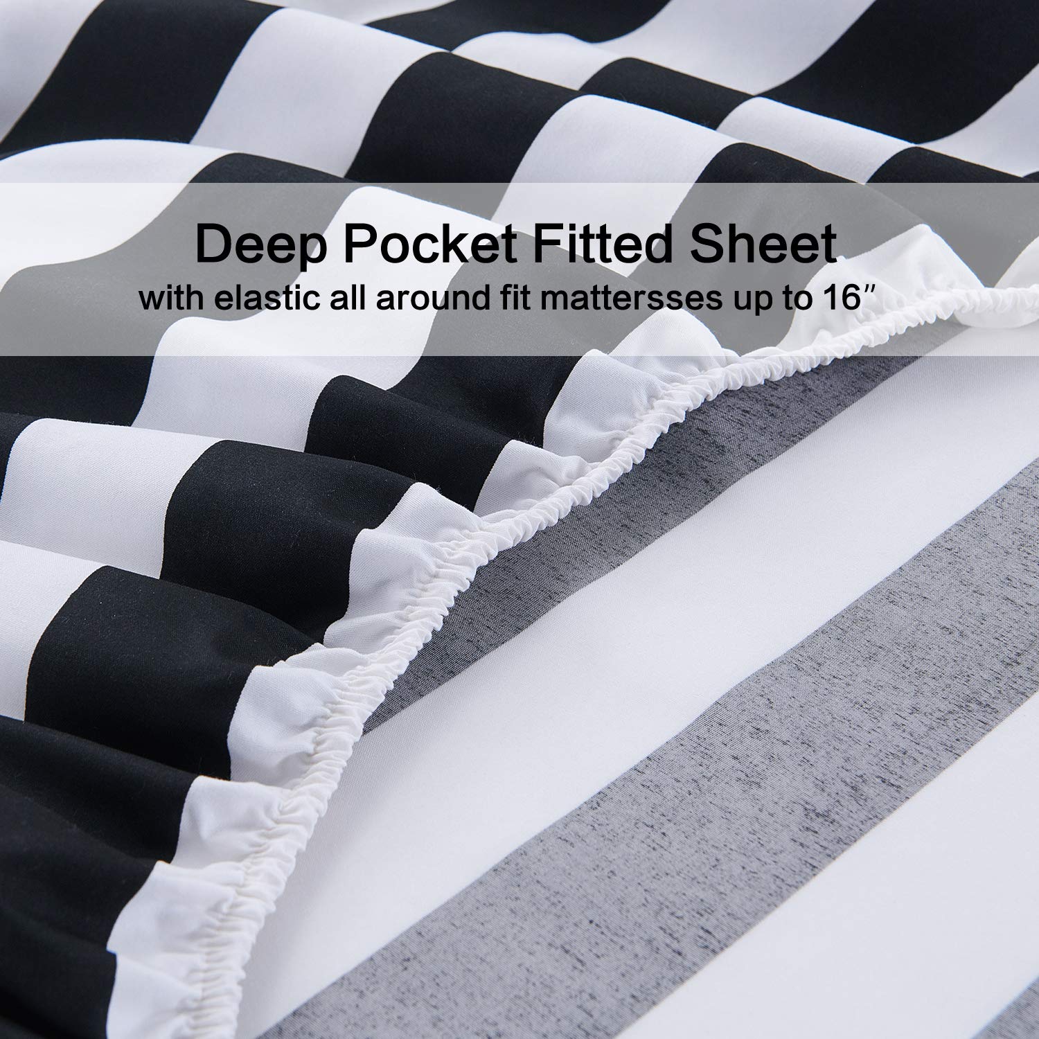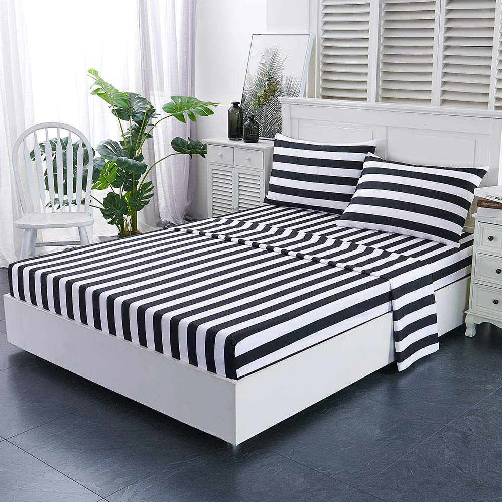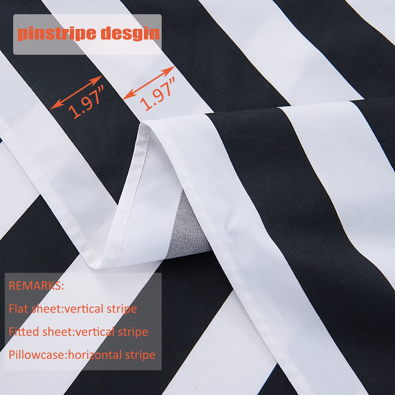 - 【WIDE STRIPE DESIGN】Width:white stripe 1.97",black stripe 1.97".Stripe direction:flat sheet and fitted sheet are vertical stripe,pillowcase is horizontal stripe.