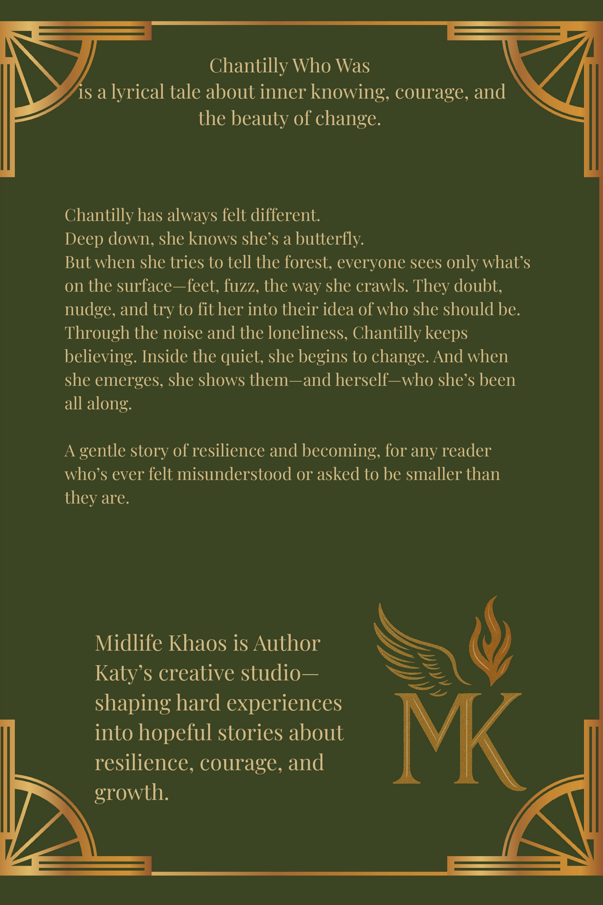 In this first book of the Chantilly series, Chantilly feels deep down that she’s meant for something more, even when the world around her can’t see it. As others doubt her dreams and question her worth, she begins to listen to the quiet truth inside—the voice that reminds her who she really is. Chantilly Who Was is a gentle, empowering story about holding on to belief in yourself, even when no one else does, and the quiet magic that comes from remembering who you’ve been all along.