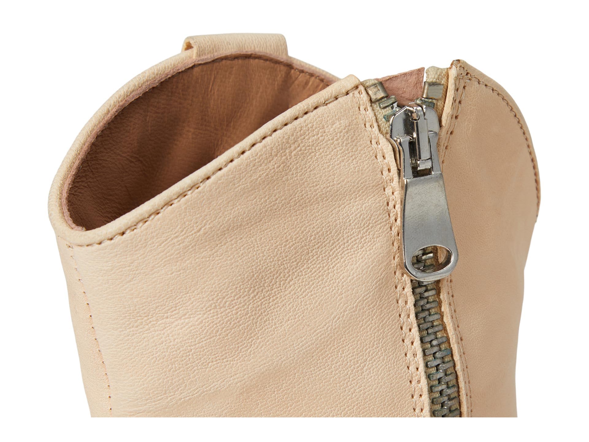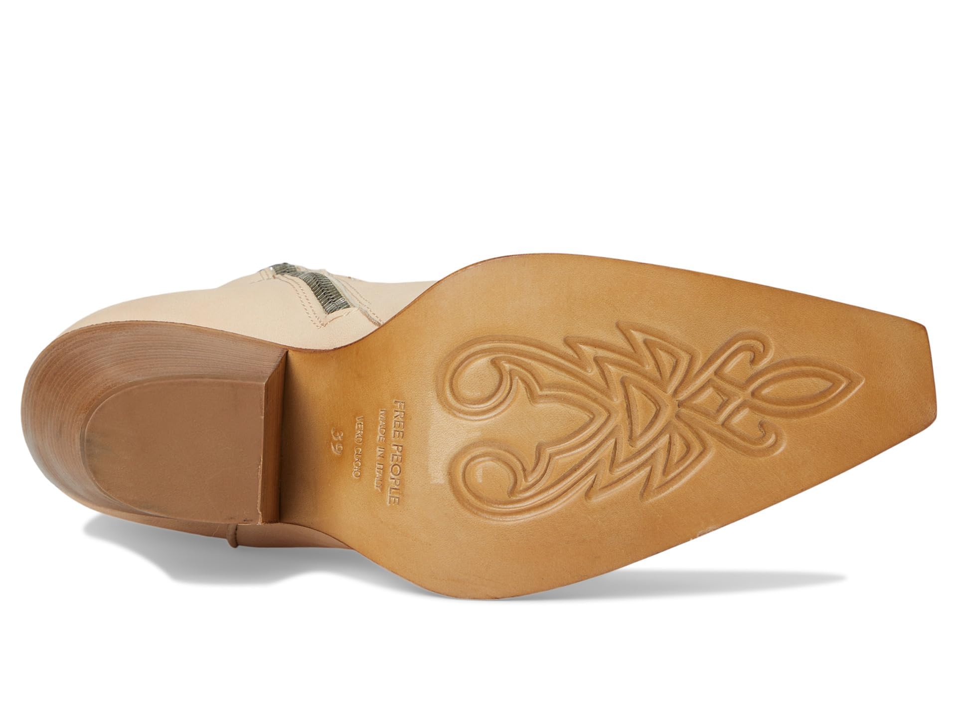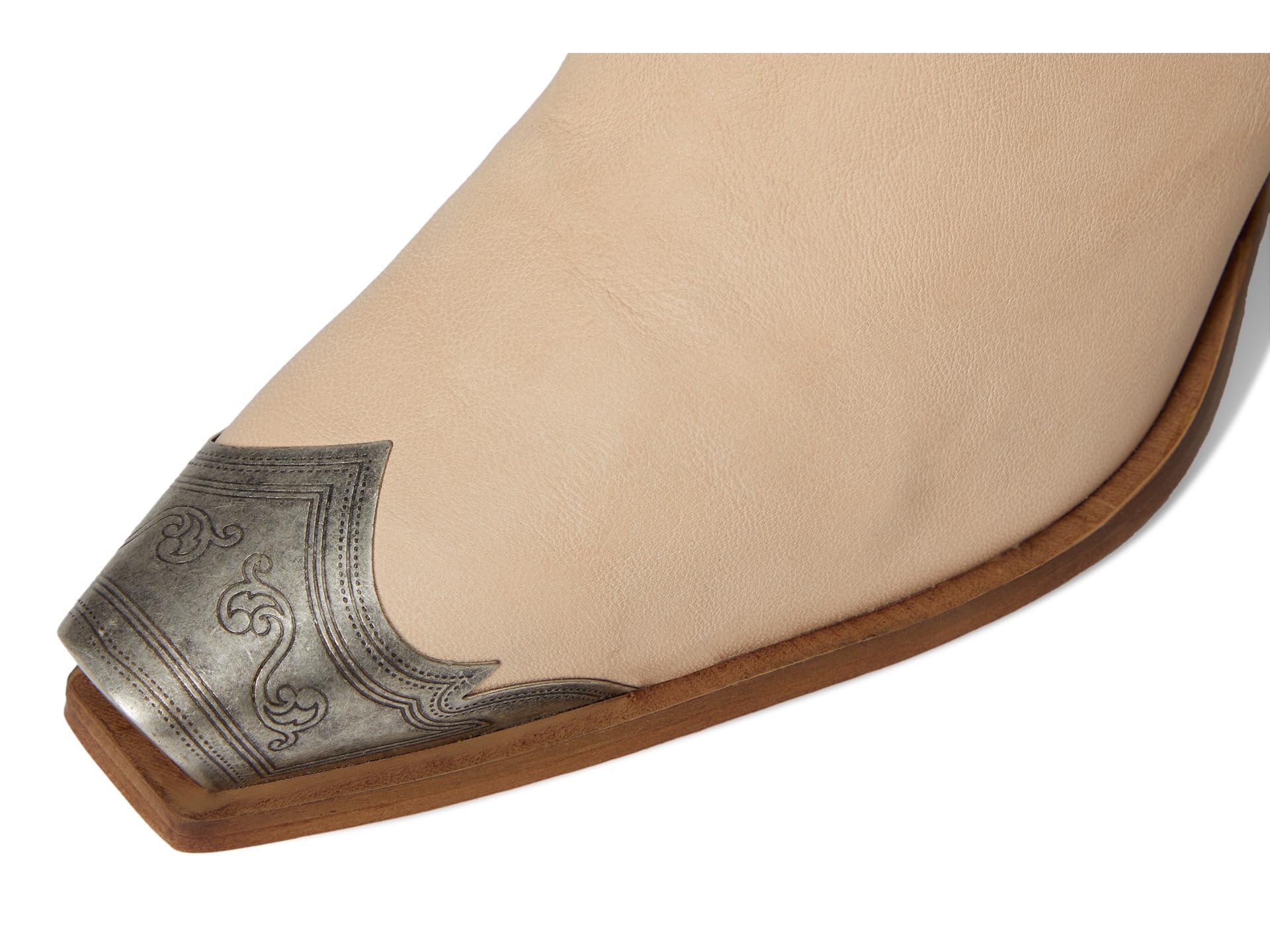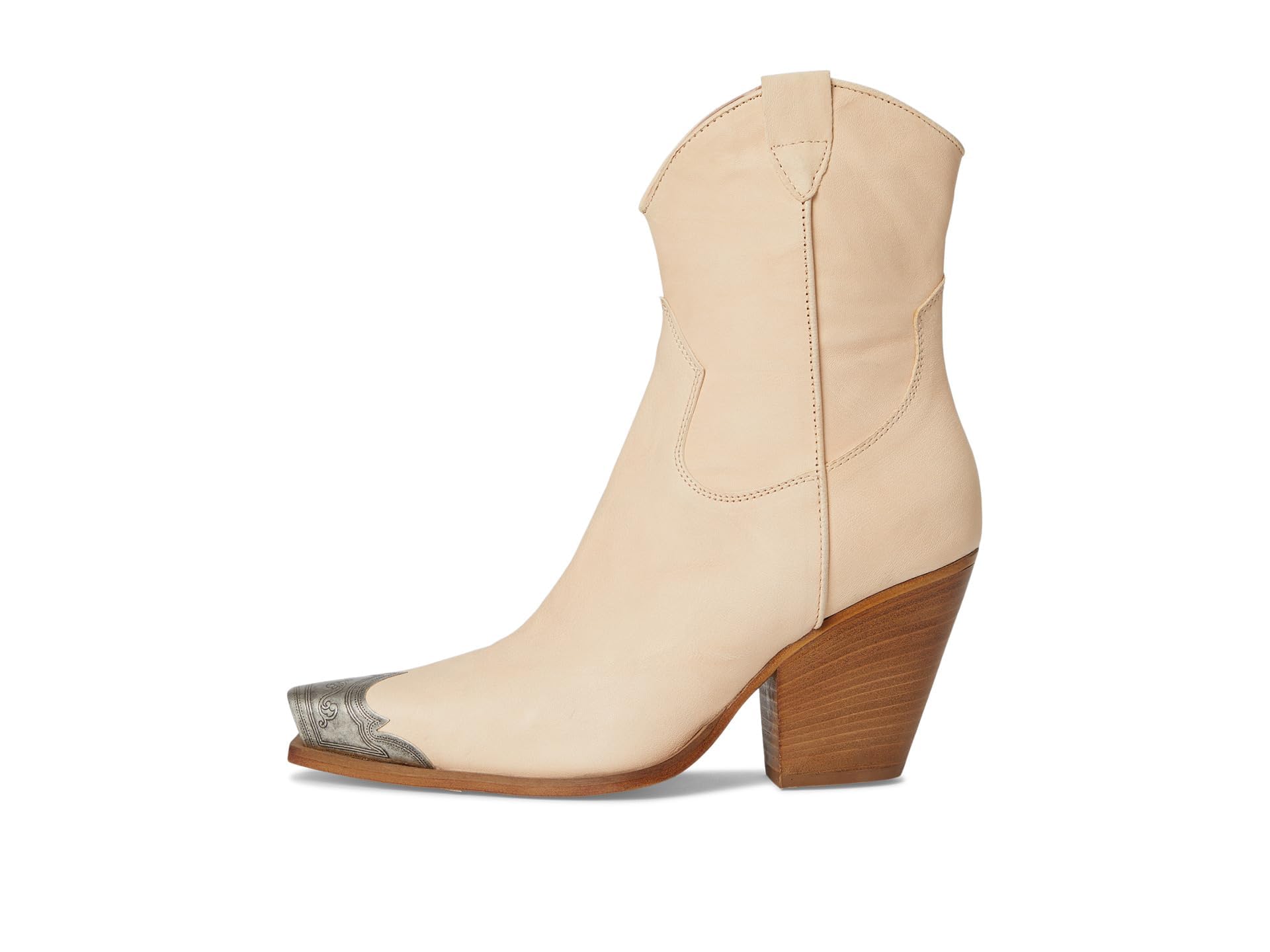 - Gorgeous Italian-crafted leather boots featured in a western-inspired style with an etched metal toe, slim sit and stacked heel. * Side zipper closure * Cushioned insole * Curved top **Fit Note:** This style runs small. If between sizes, we suggest sizing up.