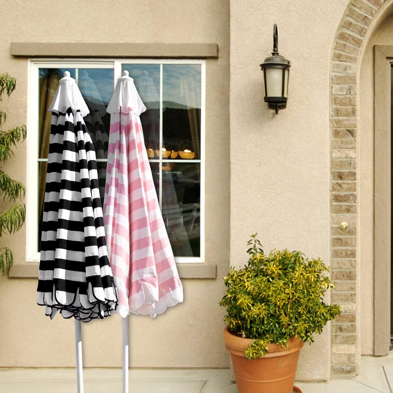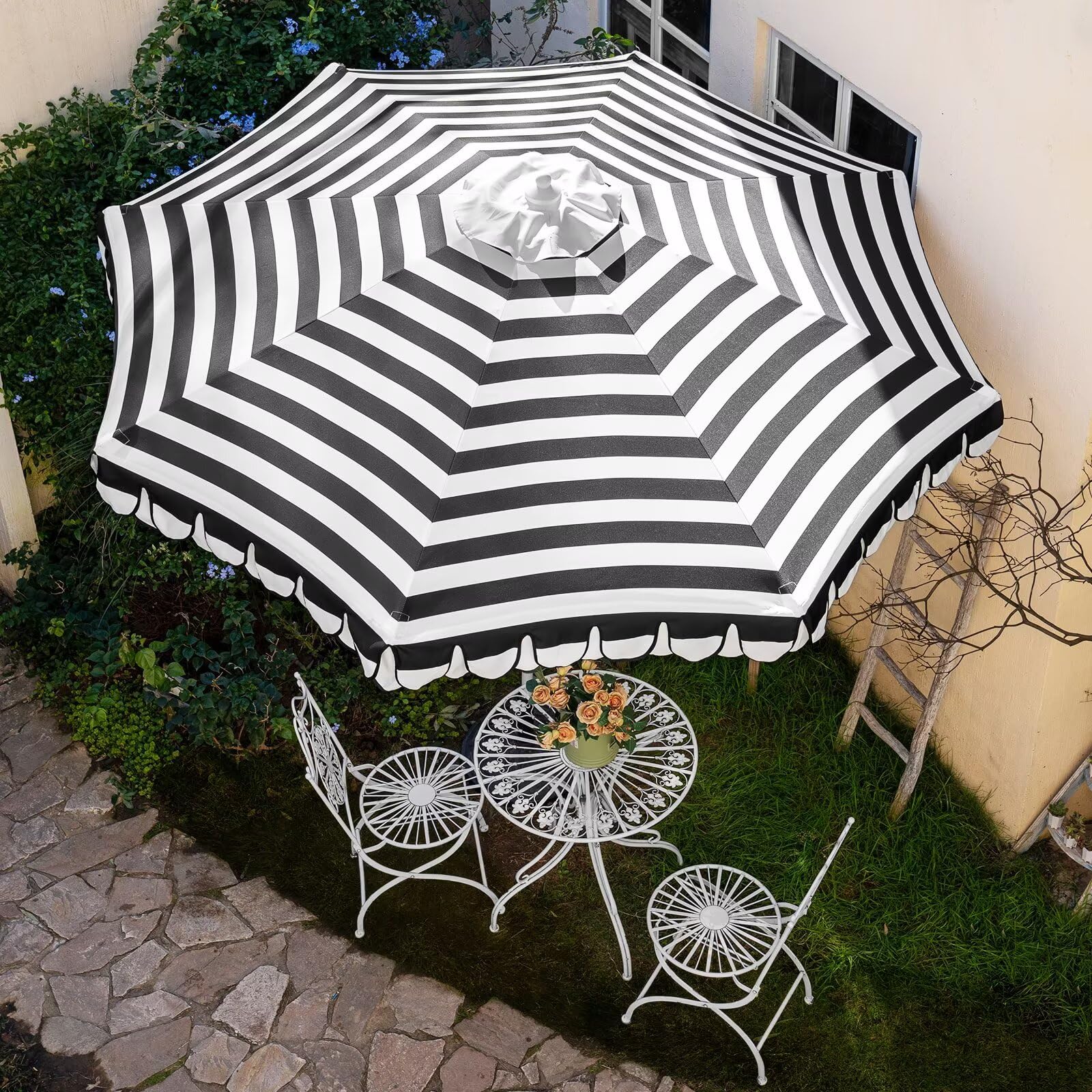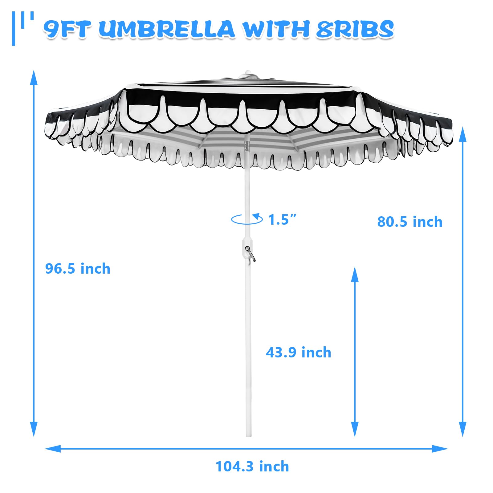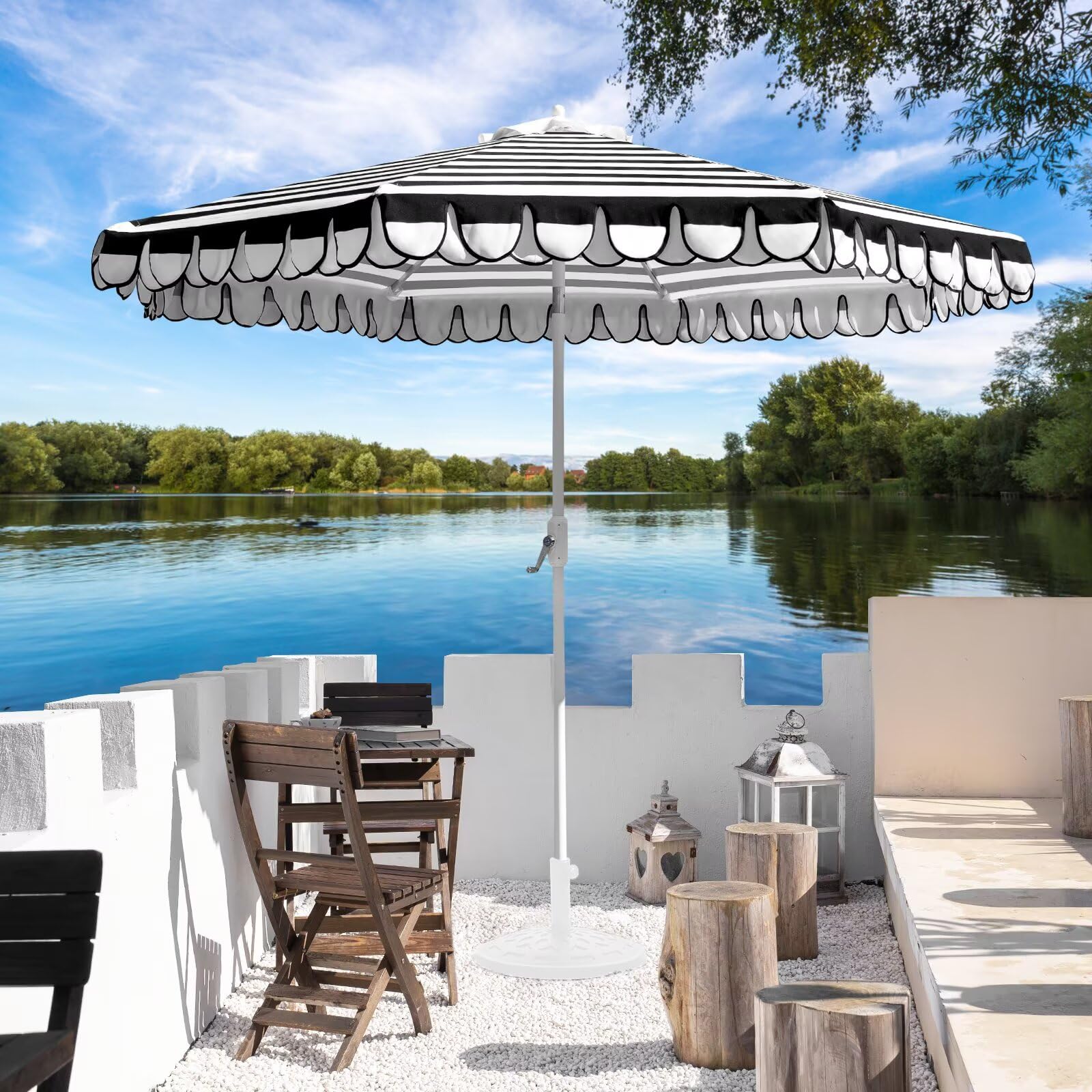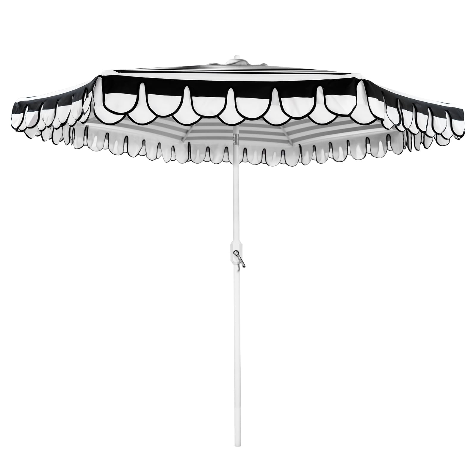 Funsite 9Ft Elegant Valance Patio Umbrella, Outdoor Umbrellas for Patio with Auto-Tilt and Crank Systerm, Table Umbrella for Outdoors, Poolside,Beach, Backyard, Black White Stripe