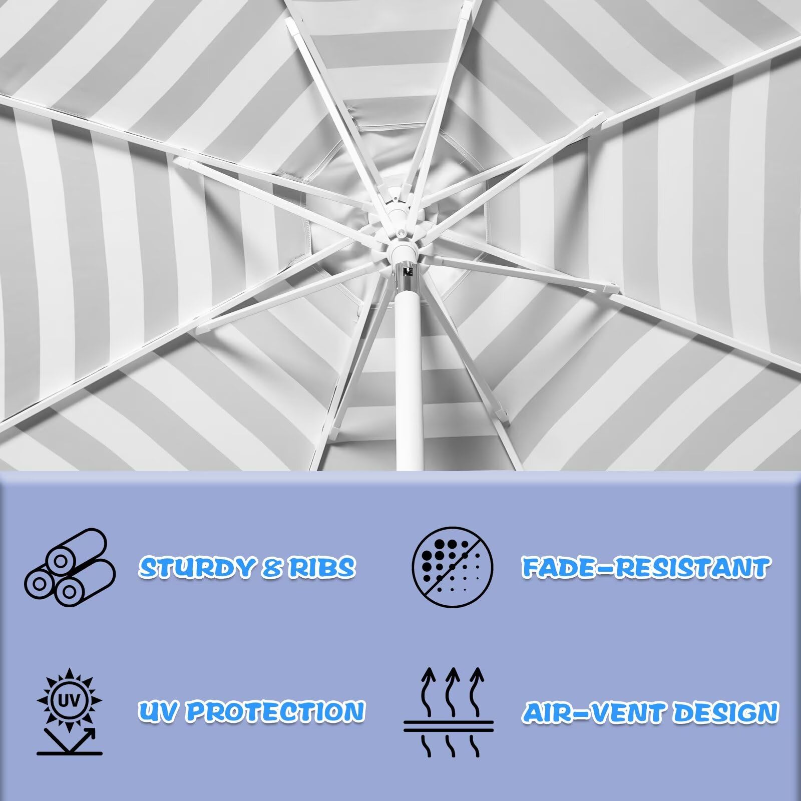 - Push-Tilt and Crank Systerm: The elegant patio umbrella has an easy auto-tilt function that ensures effortless opening and closing of the patio umbrella canopy. When the umbrellas are fully opened, turn the crank handle according to the direction of sunlight to get a tilted shade and protect your skin health.