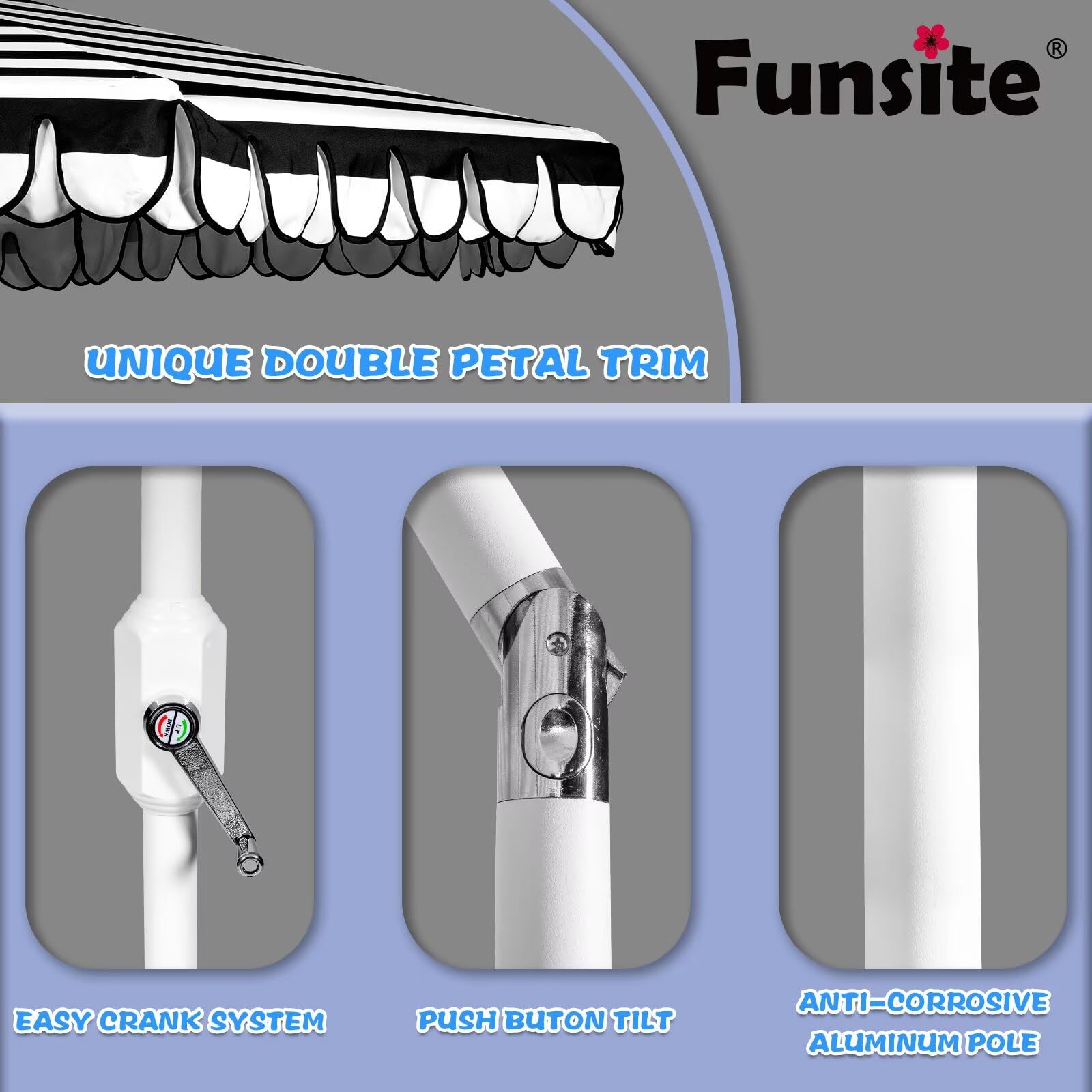 - Modern Valance Design: Tired of the same old patio umbrellas? FUNSITE valance outdoor umbrellas will be your optical chioce. Our patio canopy features a unique navy blue petals with white trim, in addition to let you and your family's patio life feel the visual enjoyment brought by the stylish design.