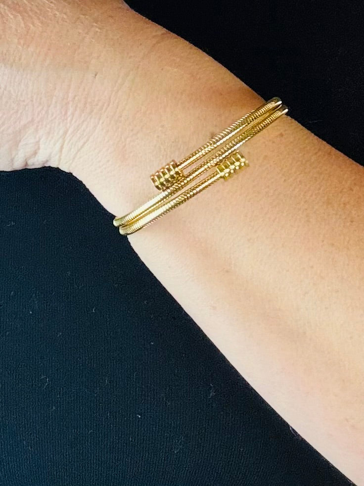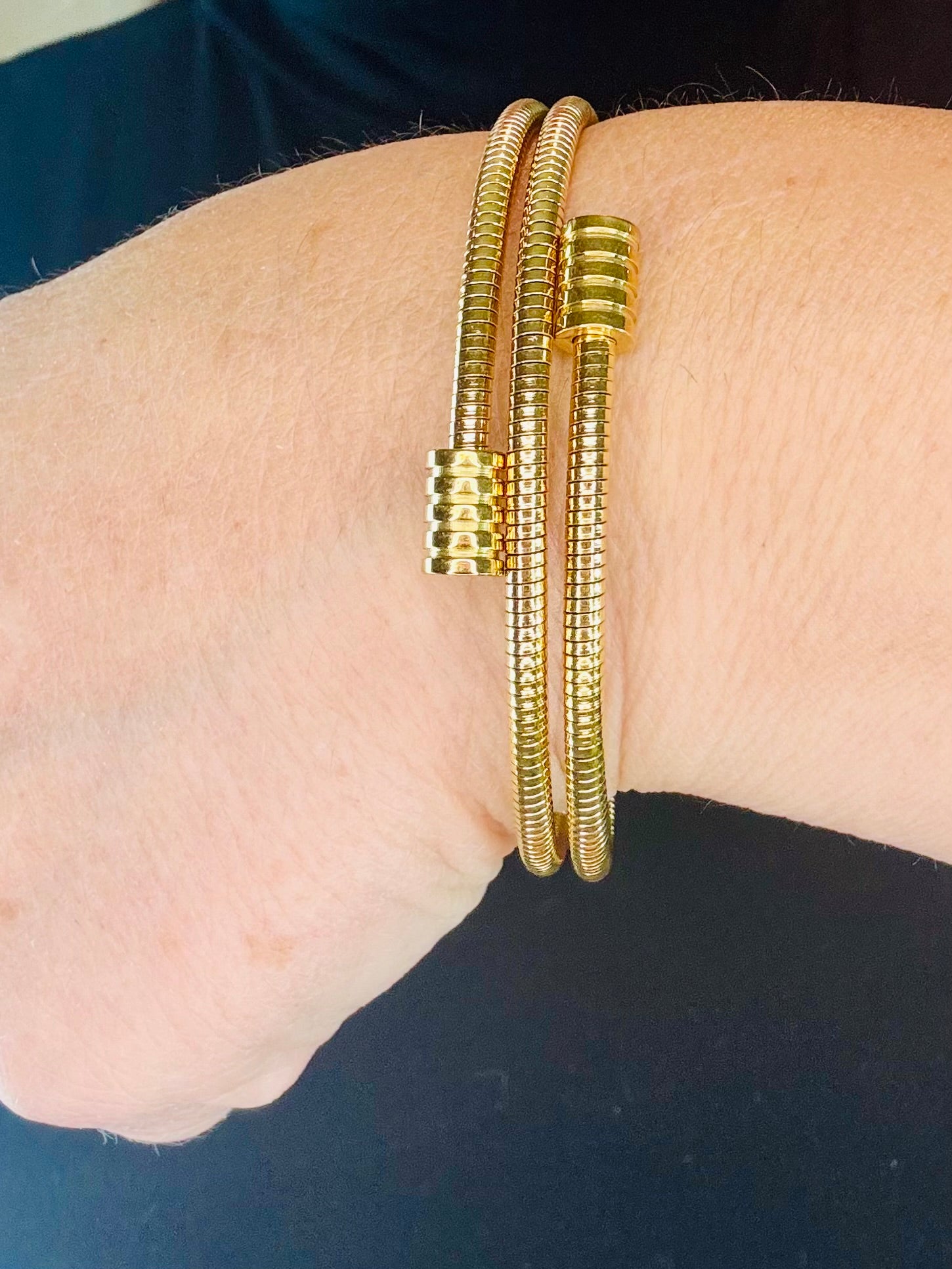 A playful accessory, this bracelet wraps around your wrist twice and boasts a lightweight feel. Perfect for layering and adding variety to your look!