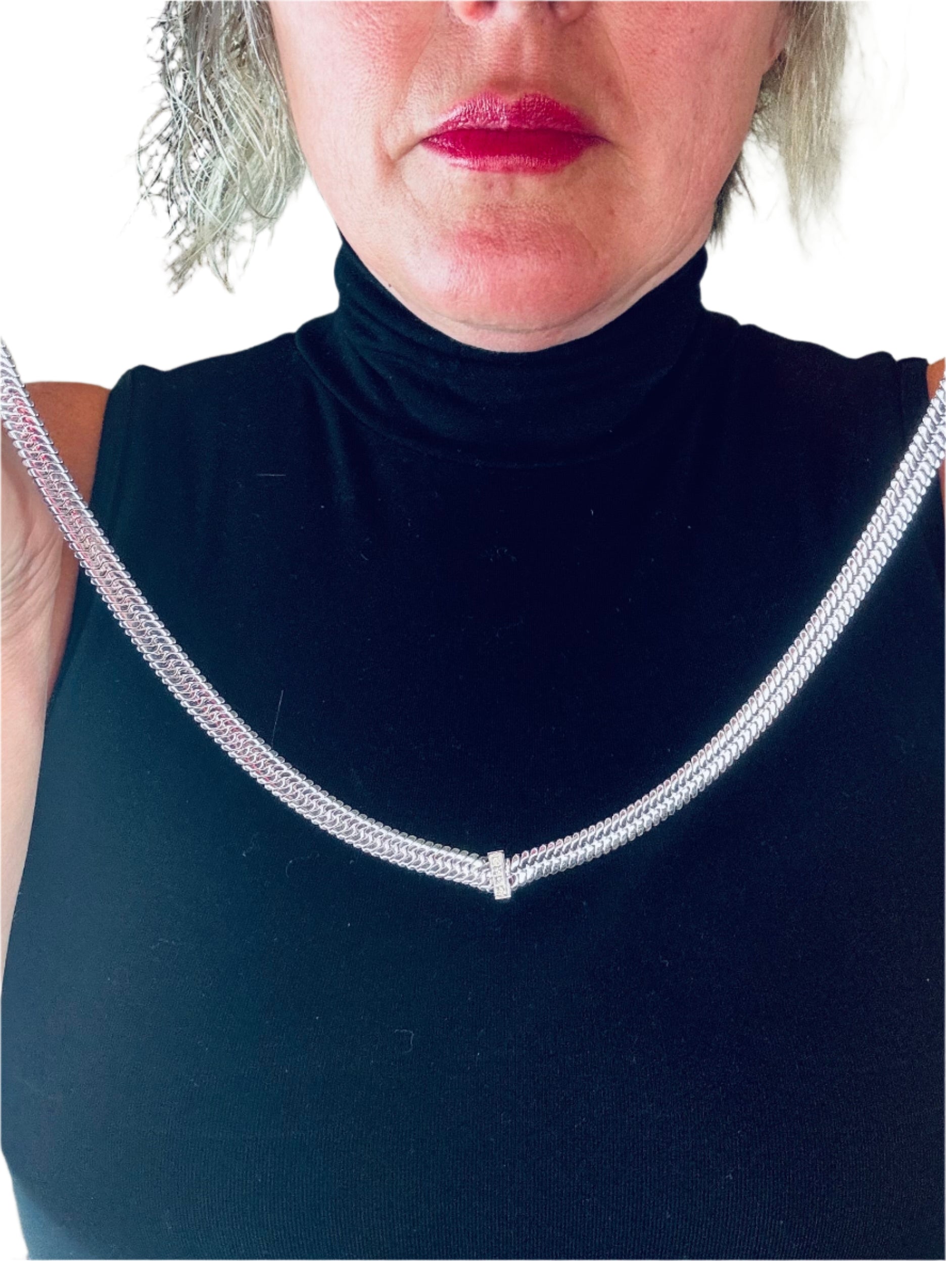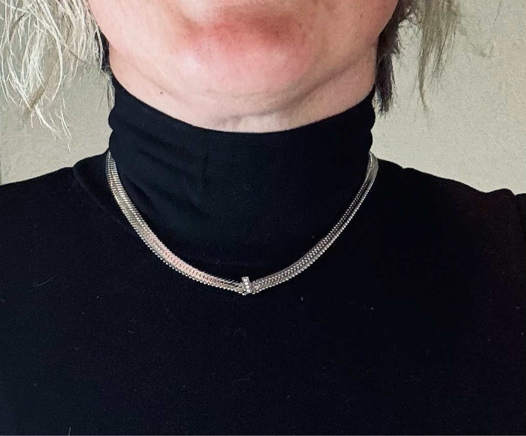 Embrace your royal side with this stunning silver snake chain, specially designed to make you feel like the hip-hop princess that you are. 16in adjustable chain.