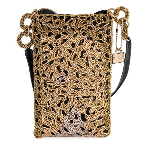 Mary Frances Gone Wild Beaded Leopard Crossbody Cell Phone Bag Clutch with Zipper Pocket and Leather Strap, Multicolor