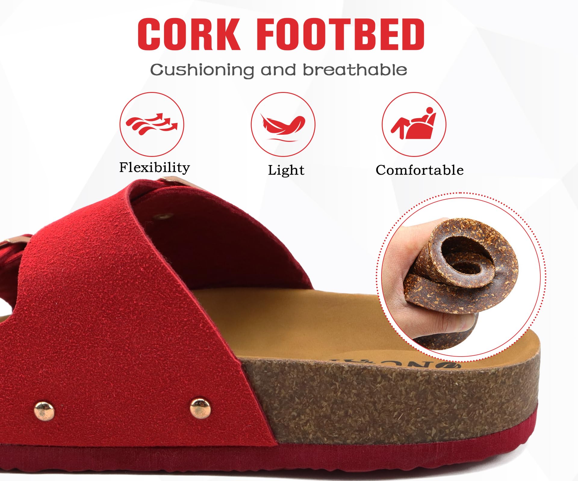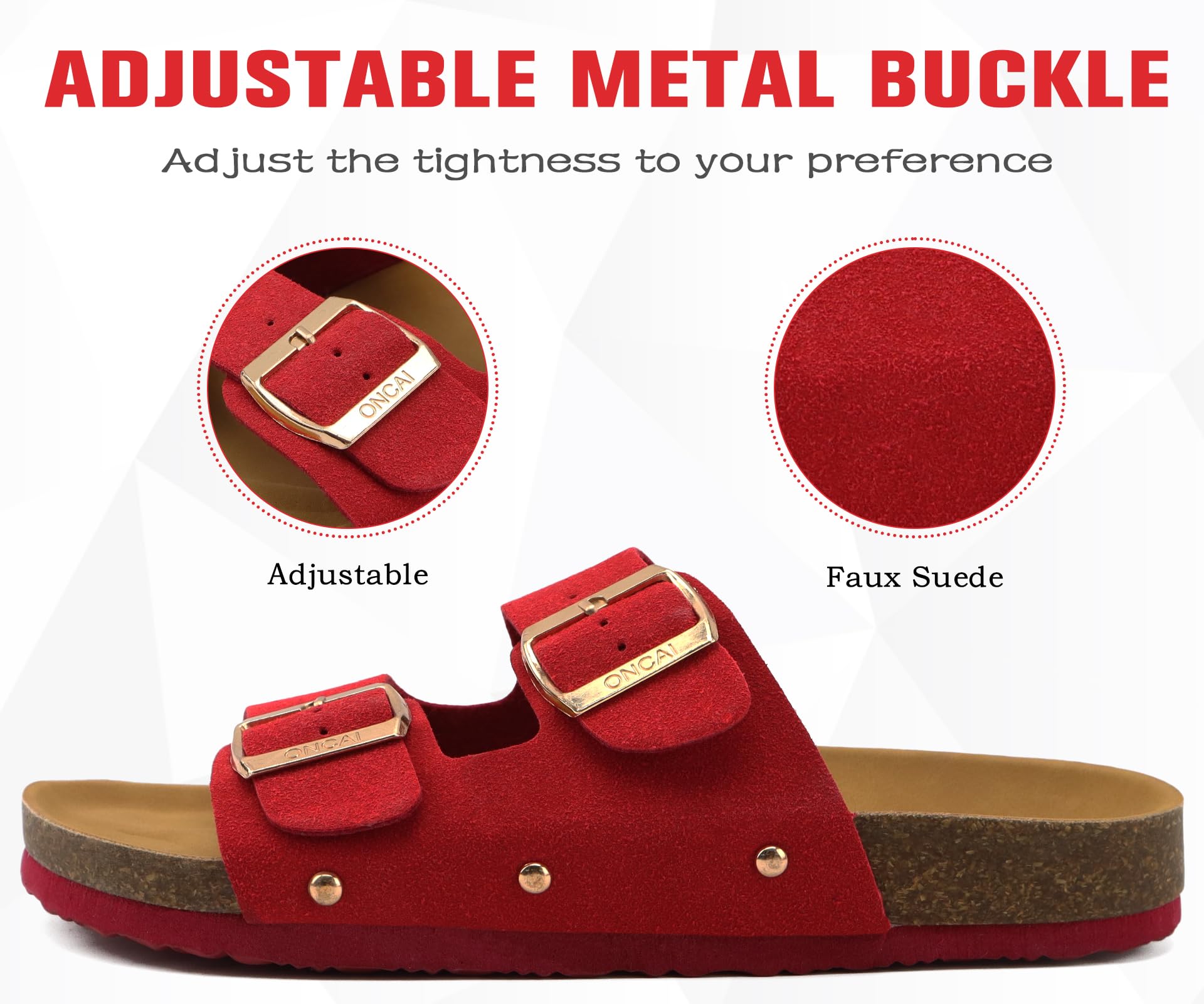 - Adjustable metal buckles - flexible suede leather strap with handy adjustable button can adapt to your feet width at ease, providing sufficient support and leaves no chafes against your feet. Breathable sandals slippers keep feet refreshing and comfy.
