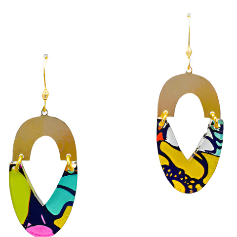 This collection is one-of-a-kind, cut from a larger floral pattern. One side is a matte finish and the other is dimensional gloss, you choose which side you wish to display. The Joni earrings are crafted from acrylic, accented with brass components and gold finish stainless steel hypoallergenic ear hooks. This coveted style is a bestseller, just the right size for any occasion - whether it's a casual day out or a formal occasion.