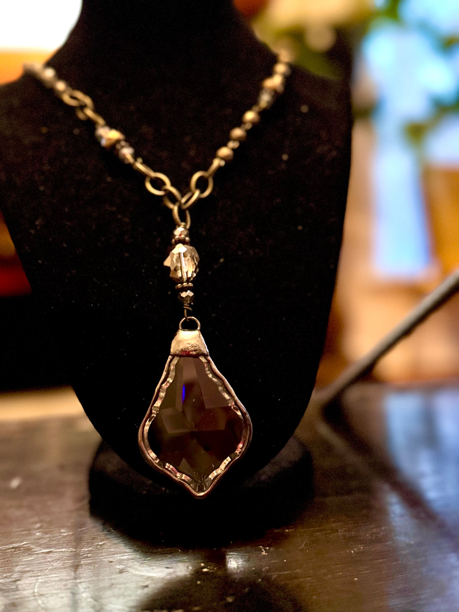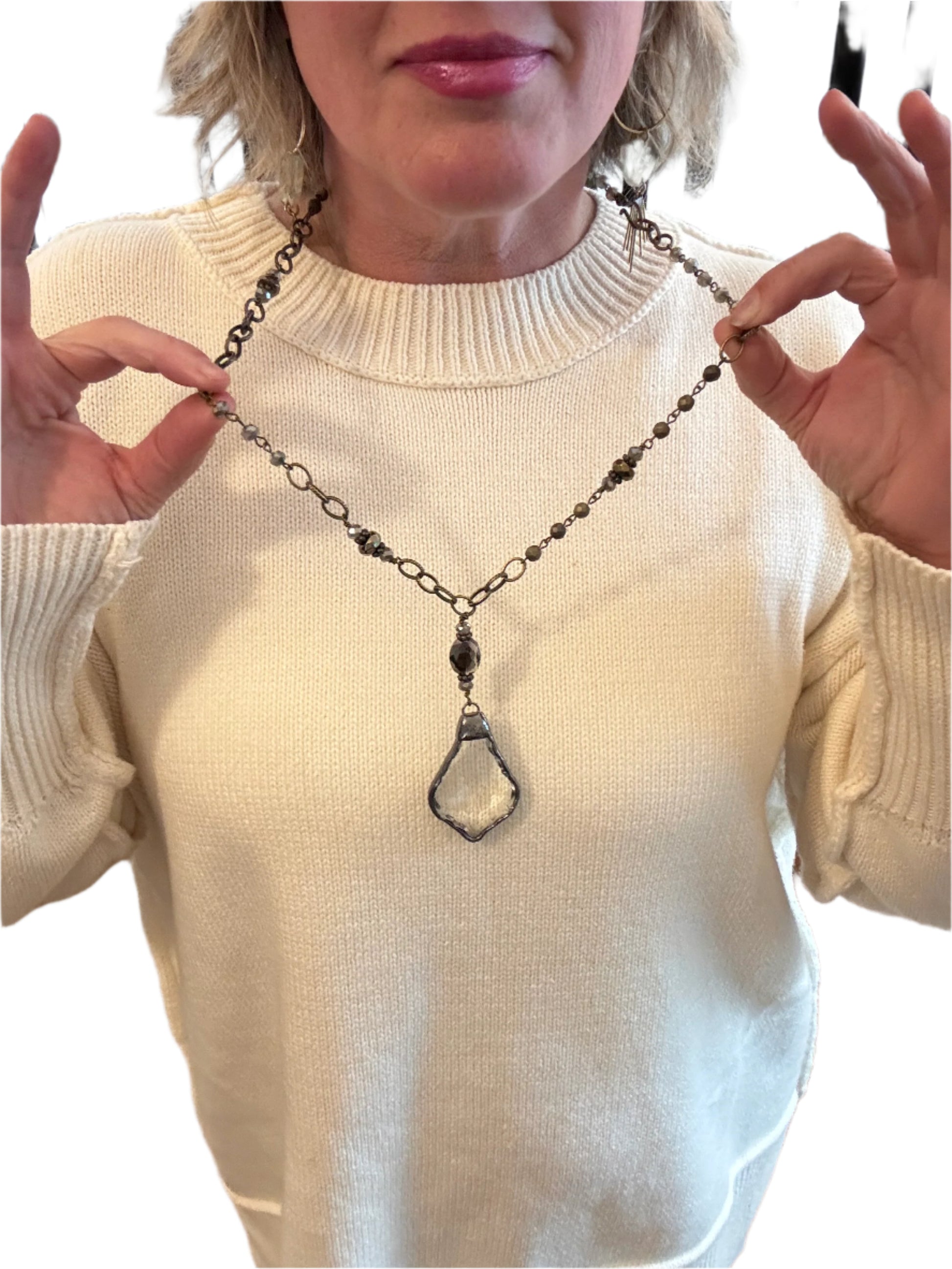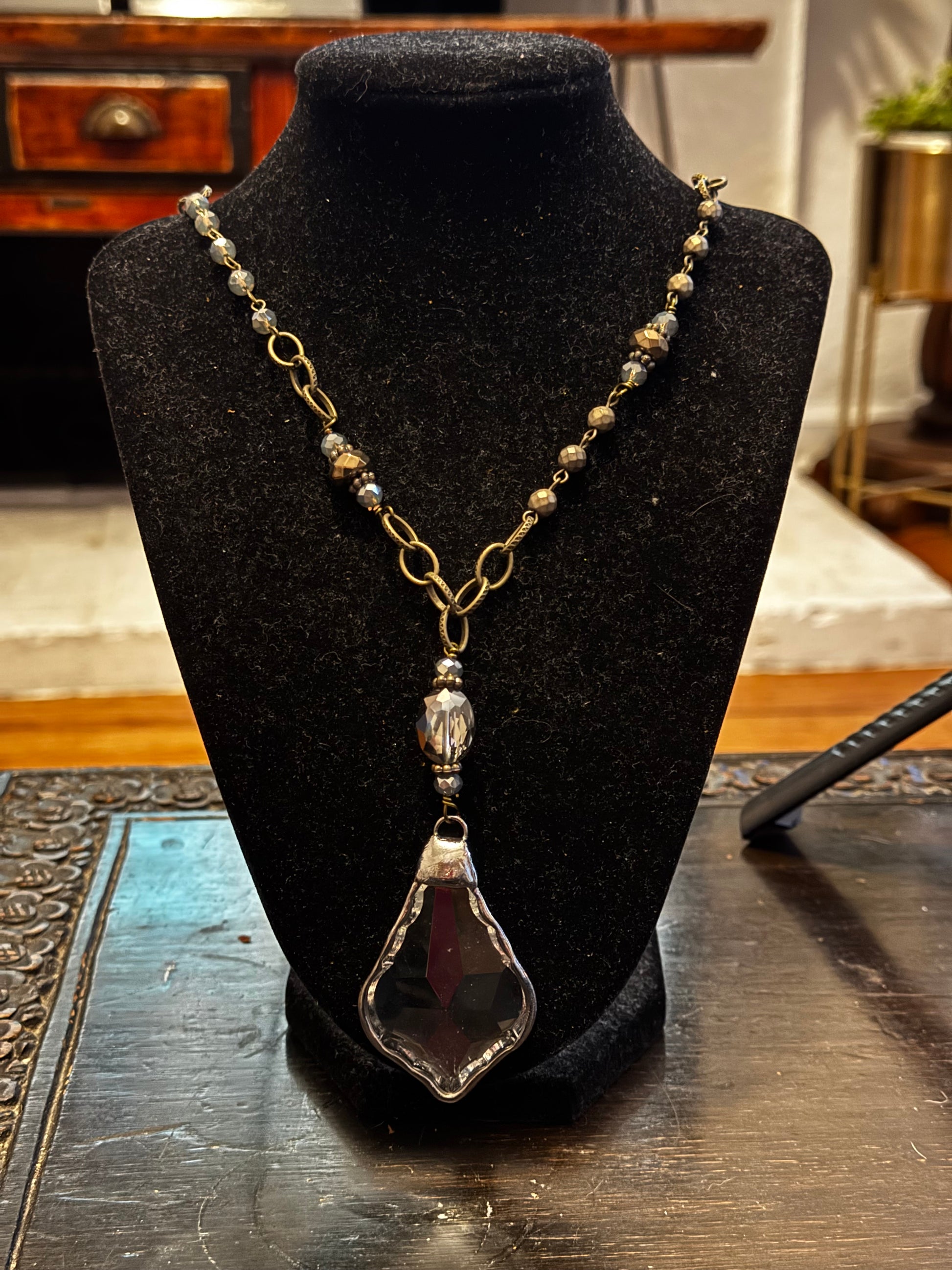 Add a touch of vintage elegance with this statement chandelier glass necklace. Long and stylish, it's the perfect accessory for any classy outfit. Who needs a chandelier when you can wear one around your neck? (We won't judge if you start swinging from it.)
