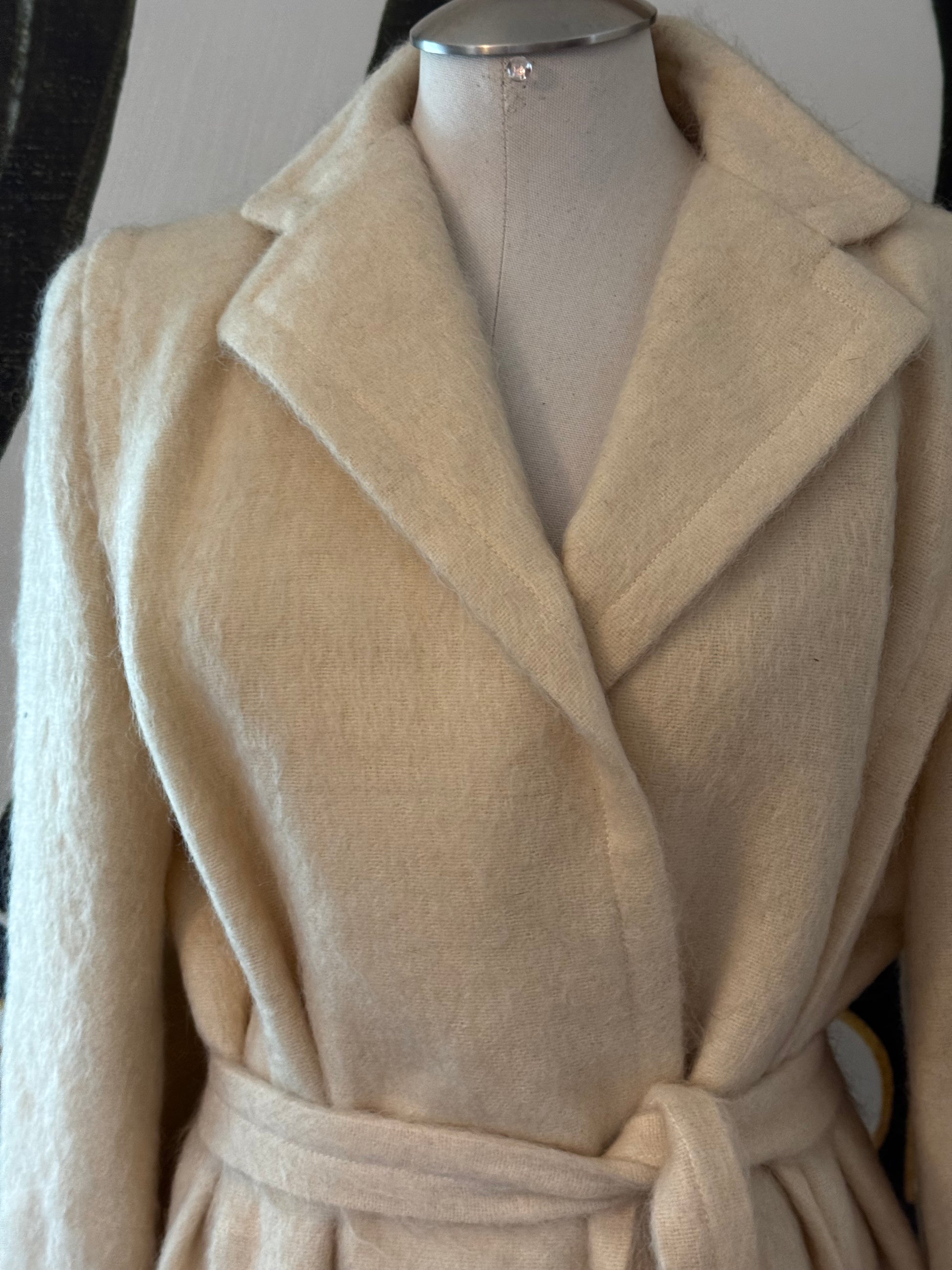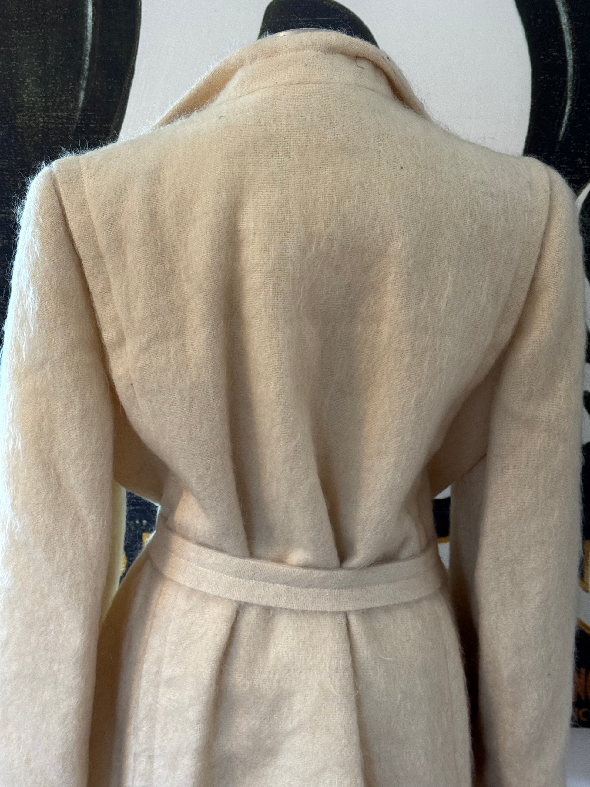 This White Wool Vintage Coat from the 60’s is both classy and exquisite. Its timeless design is perfect for those looking to add a touch of vintage charm to their wardrobe. Made with high-quality materials, this coat will not only keep you warm but also make you stand out in any crowd. Fits sizes 6-8 best.
